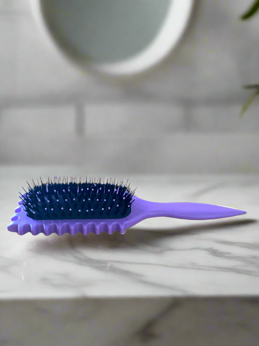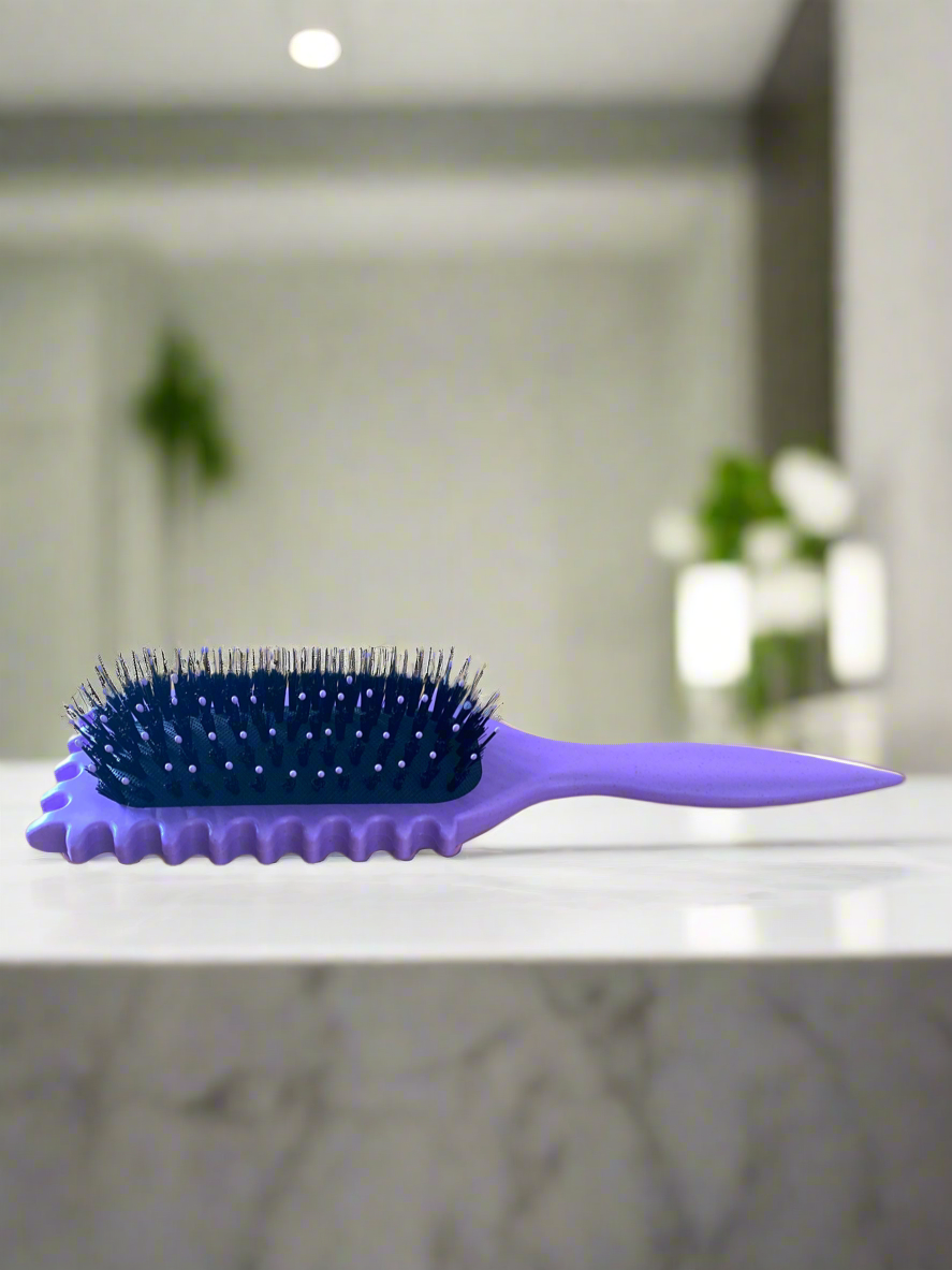 The Curl Define Brush revolutionizes curl management as a comprehensive 5-in-1 styling tool. Engineered specifically for curly, wavy, and coiled hair textures, this brush effectively detangles while simultaneously defining natural curl patterns. Its specialized bristle configuration minimizes frizz by distributing product evenly throughout the hair shaft. The ergonomic design allows for precise edge control and root lifting, creating volume where needed while maintaining curl integrity. Ideal for both wet and dry styling applications.